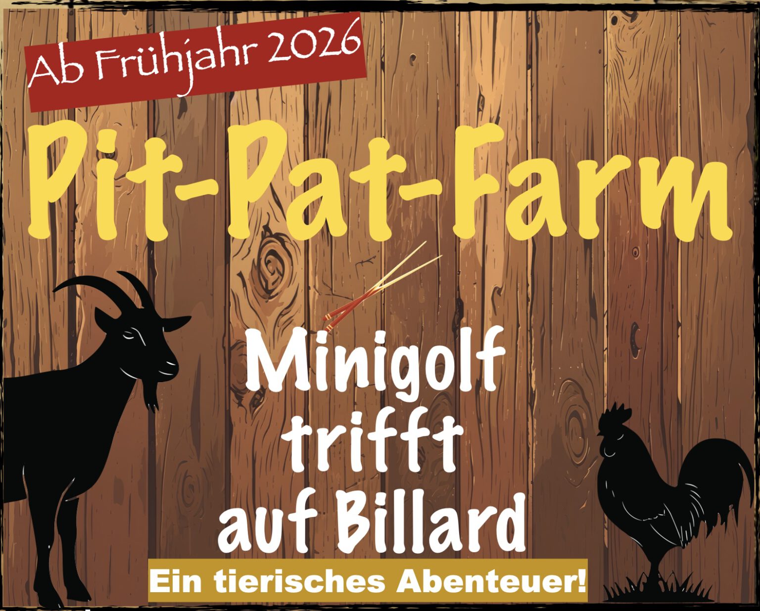 Auf euch warten 18 Bahnen beim Adventuregolf, 18 Stationen beim Fußball-Minigolf, 4m x 8m Spielfläche beim Fußball-Billard, unsere outdoor Kegelbahn sowie Pit-Pat ( Billard-Minigolf ) mit 18 Bahnen.